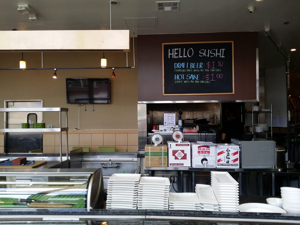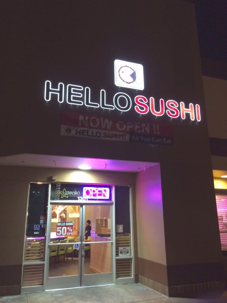 Hello Sushi Specializes in quality All-You-Can-Eat Sushi. A la carte Half price on all nigiri, handrolls, and select rolls.All you can eat: Lunch $20.99, Dinner $ 24.99, Kids (age 4-10) $ 13.95Weekends & Holidays are dinner priced10% Discount on total bill for All-You-Can-Eat groups of 8 or more.